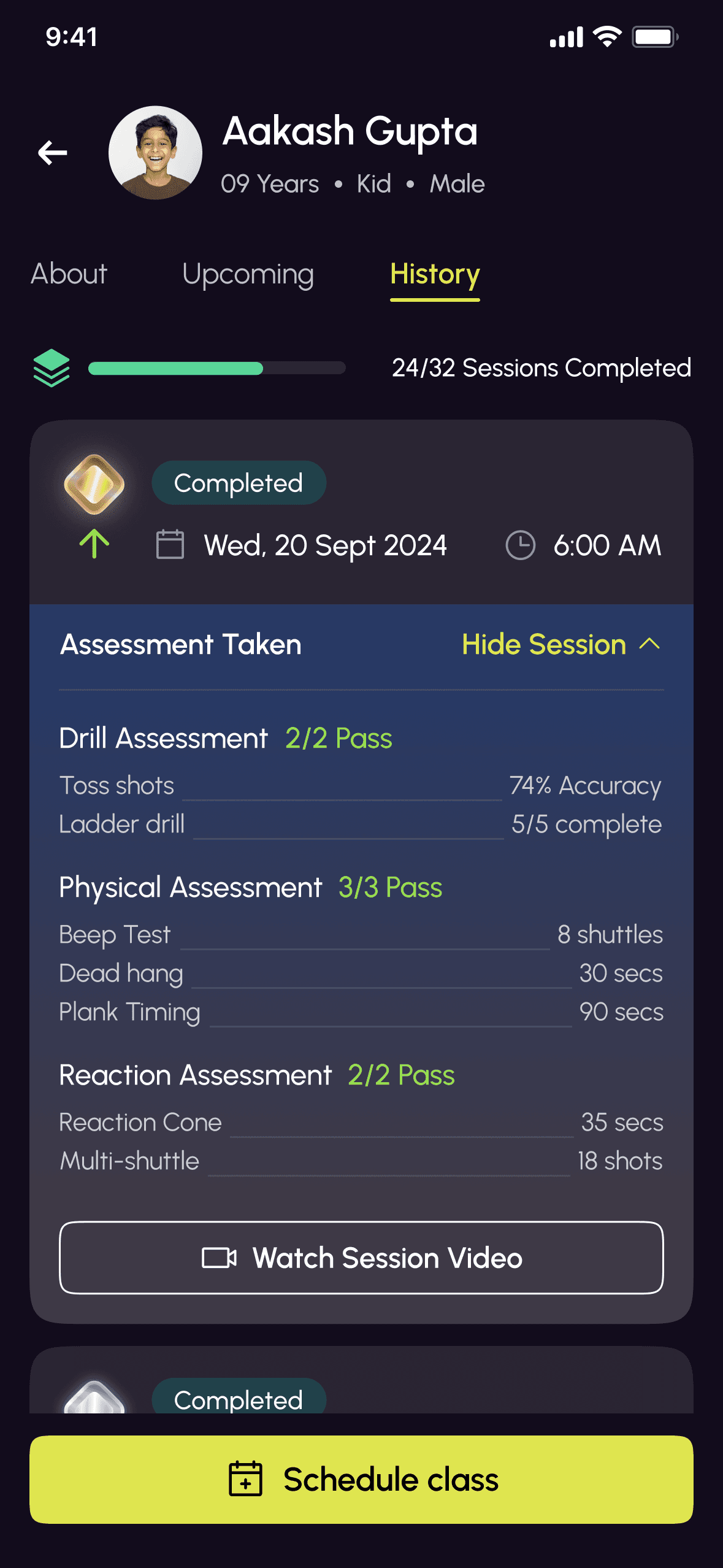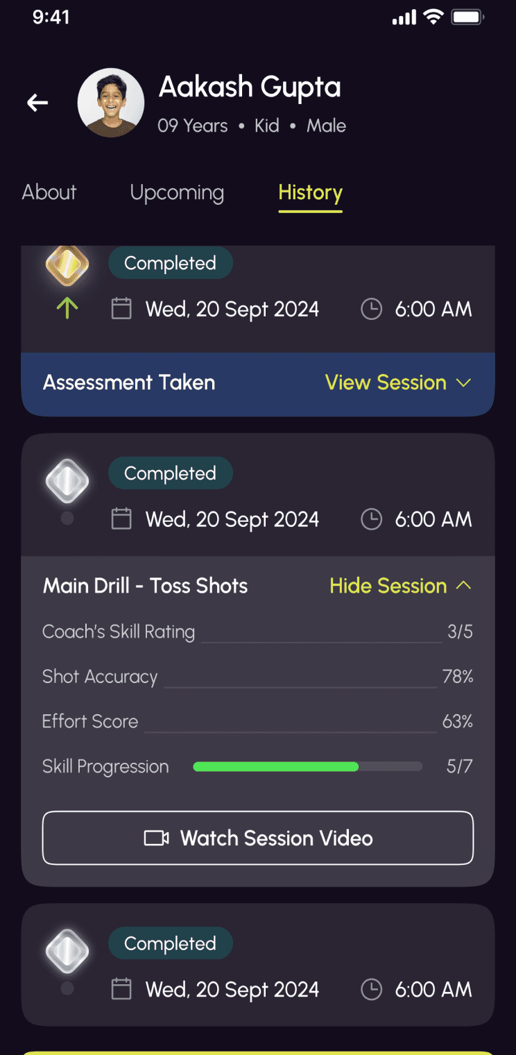 Get detailed reports on your child’s game directly from their coach.