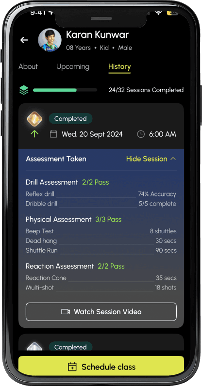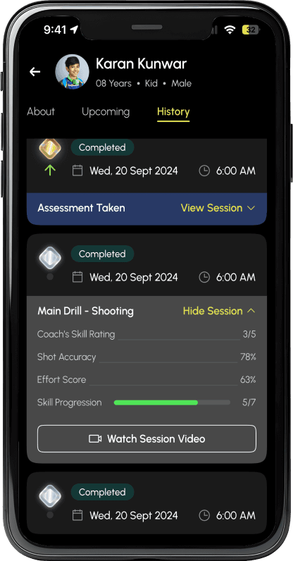 Get detailed reports on your child’s game directly from their coach.
